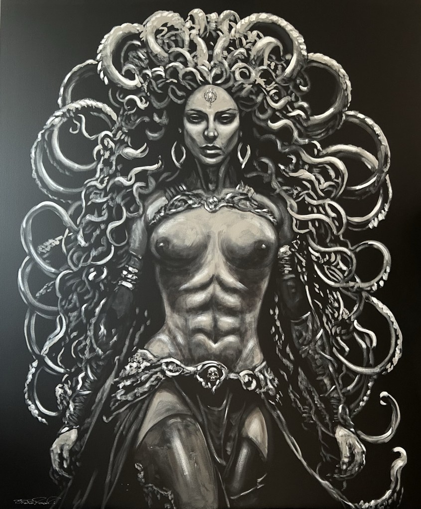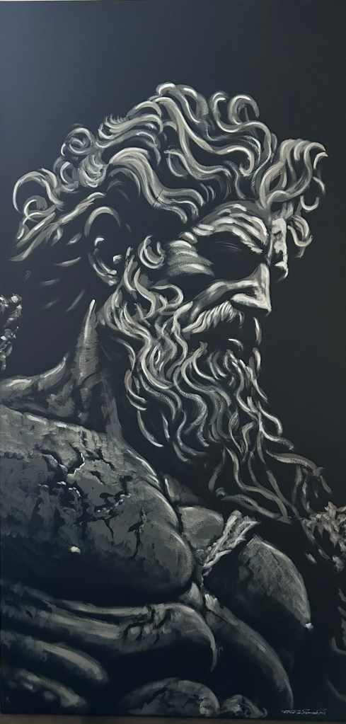 My work moves between modern chaos, precise automotive forms, and spiritual Oracles—but it is always the same world. I paint the vastness of my imagination as three planes of existence: abstract fields where emotion and thought collide, ordered machines of speed and steel, and quiet figures standing at the edge of the unseen. Together, they show not only what I love, but how I see beauty—mechanical, human, and spiritual—woven into one continuous story.