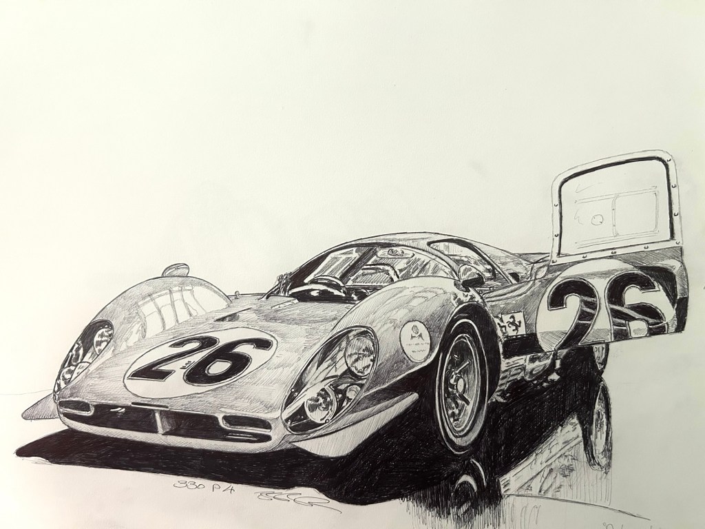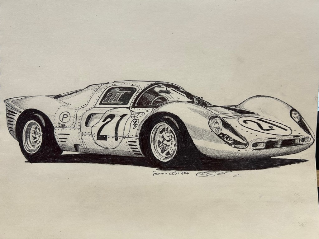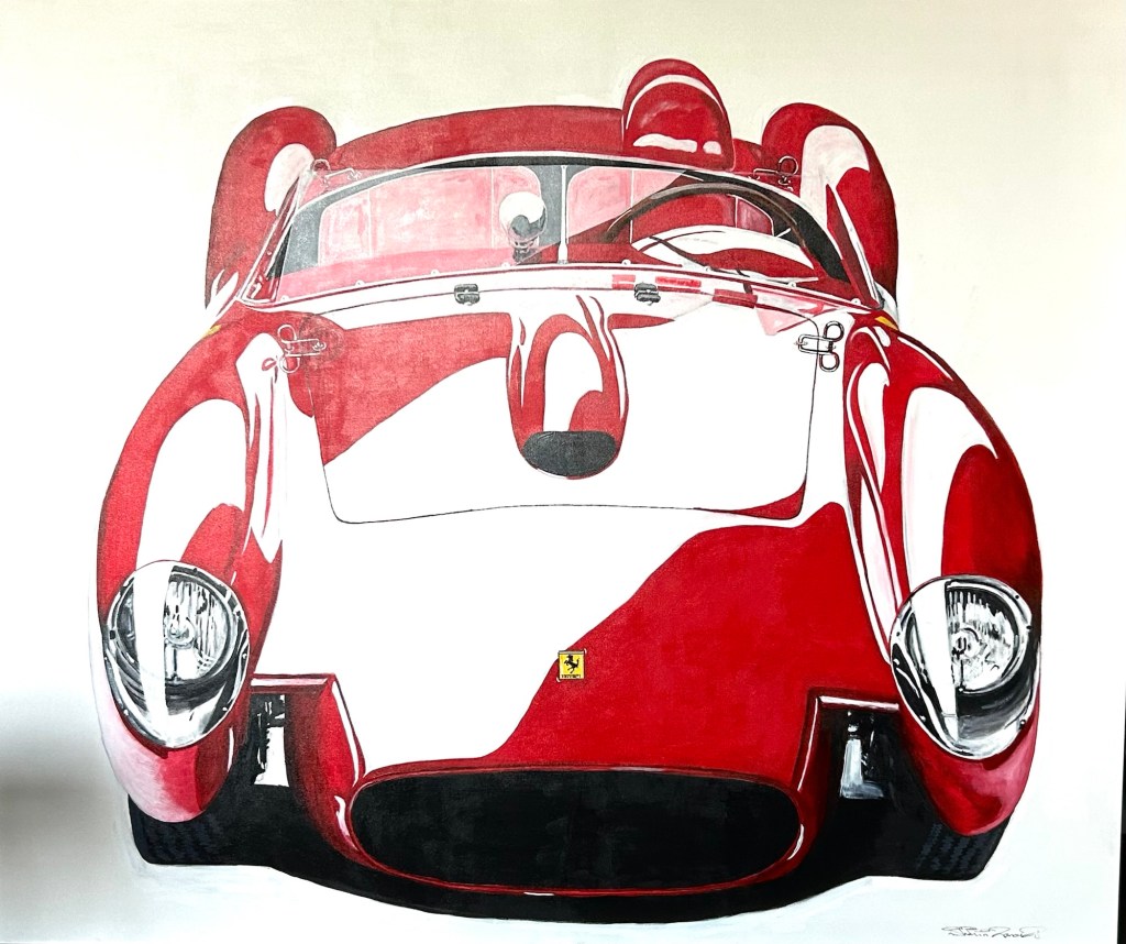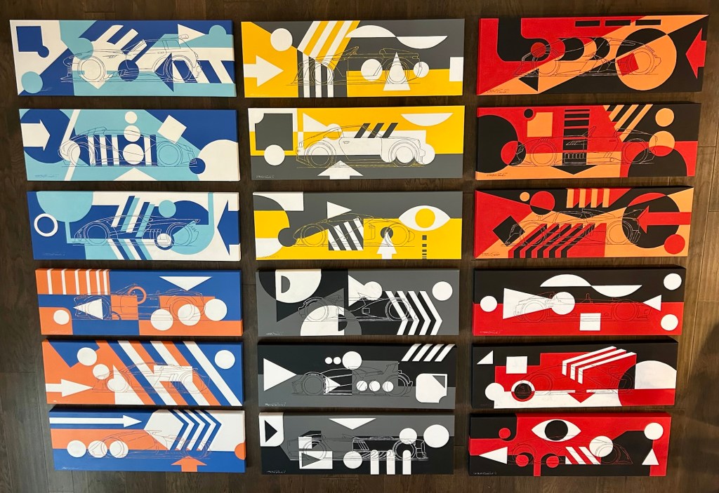 Multiple piece work, can be oriented differently showing precision geometry and my own car designs . Each 18 piece is 36”x12” Commissioned piece 30”x40” YarrowBayOracle of Senses 6’x8’ mixed mediaOracle of Knowledge 6’x8’ mixed mediaOracle of Hearts 6’x8’ mixed mediaFigurae Divinorum 6’x8’ mixed media“Destrier” Commissioned Piece 3’x3’“Longhorn“ Commissioned Piece 3’x3’“Beauty and the beast” Commissioned piece 3’x3’Truth and me 8 piece 30’x40’ mixed mediaGod Dialer Commissioned Acrylic 10”x10” each1-My Number 5’x6’ canvas commissioned acrylic 2-My Number 5’x6’ canvas Commissioned Acrylic3-My Number 5’x6’ canvas Commissioned AcrylicLounge 3’x4’ canvas commissioned Acrylic72”x36” Modern Moses72”x36” Freedom with Caesar72”x36” Alexander Gaze72”x36” Zeus Commissioned Acrylic 72”x60” MedusaCommissioned 9’x4’ 930Commissioned 9’x4’ SingerCommissioned 9’x4’ F40Commissioned 9’x4’ F50Commissioned 9’x4’ MiuraCommissioned 6’x5’ T35Commissioned 6’x5’ 57 250 Testarossa Commissioned 6’x3’ Piquet’s Burger’s 3’x6’ commissioned on canvasSenna’s 3’x6’ commissioned on canvasCommissioned 6’x3’ Mansell’sCommissioned 5’x4’ Mister BondCommissioned 30”x40” FrankCommissioned 30”x40” AlexanderCommissioned 5’x4’ Casino RoyalePencil Sketch Helmut’s peak hole Pencil Sketch, Linda and IsabellaPencil Sketch, Classic Race 250’s and E TypesPencil Sketch, 250 SWB and LotusSketches of Austins and FordsPencil Sketch Harley Sportster Pencil Sketch, Ralph’s Coffee HYCubism Etude commission